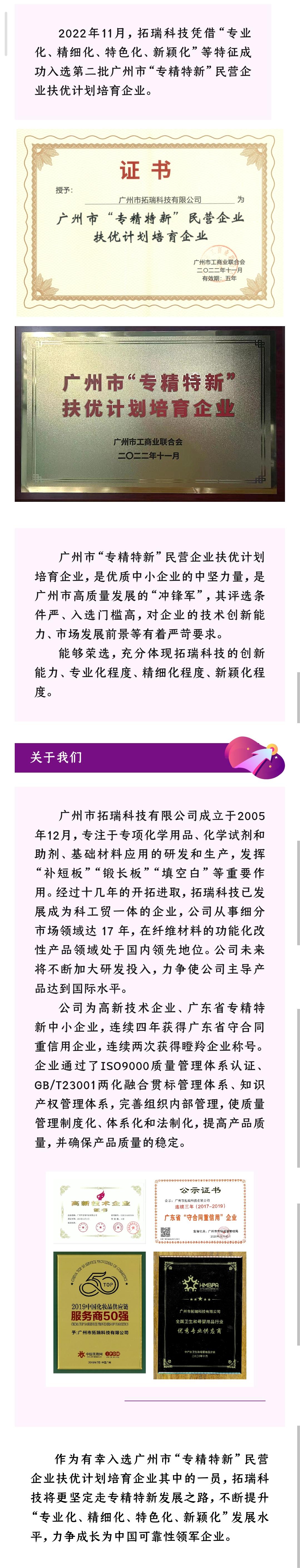 拓瑞科技入選廣州市“專精特新”民營(yíng)企業(yè)扶優(yōu)計(jì)劃培育企業(yè)